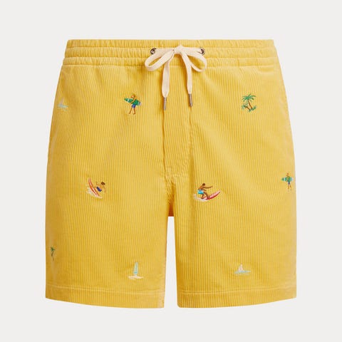 Ralph Lauren XL Grå Polyester Shorts for herre. Shortsen er laget av polyester og har en grå farge. Den har lommer og elastisk midje med snøring for justering.