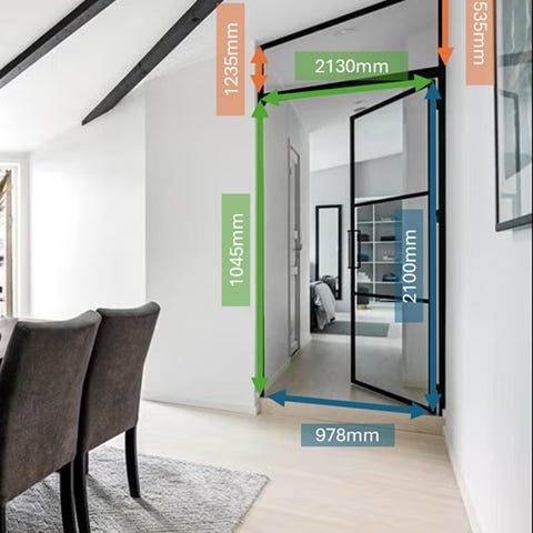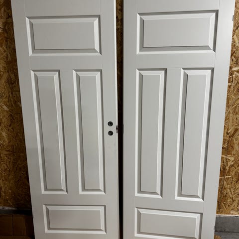 Dørene er skrudd ned. Håndtak medfølger, men ikke dørkarmer.