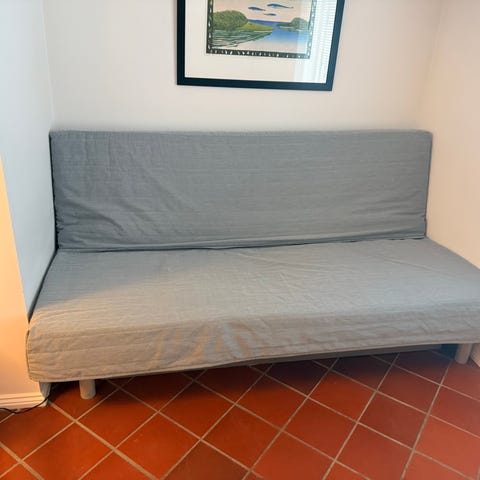 Ikea backebro sovesofa, pillows could use some fluffing and it is a little worn but still has life, good for an extra room or if you need a guest bed.