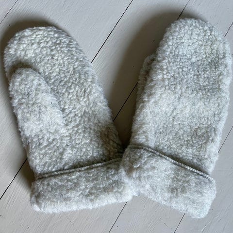 Eiger votter i fleece. Enten kan en ha fingertuppene ute, eller så kan en brette en "flapp" over de.