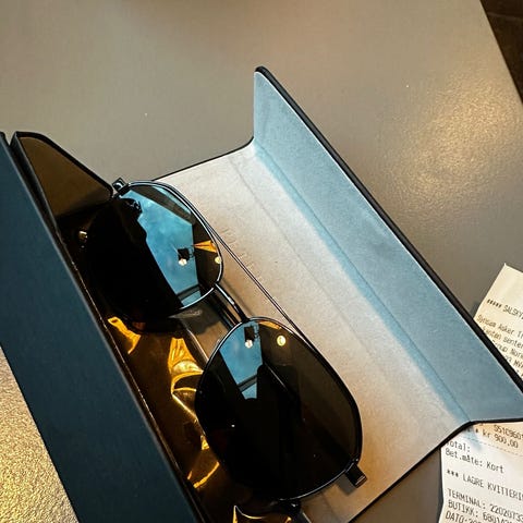 Brillene er i god stand. Svak styrke på glasset, antar -1