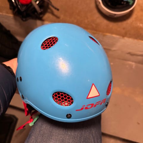 Sweet Protection hjelm i størrelse M, farge hvit med blå detaljer. Hjelmen har polstret innside for komfort og sikkerhet.