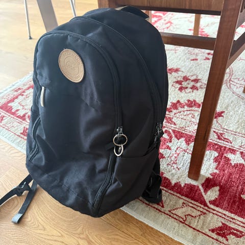 Sort, pent brukt Polarn O. Pyret sekk for barn.