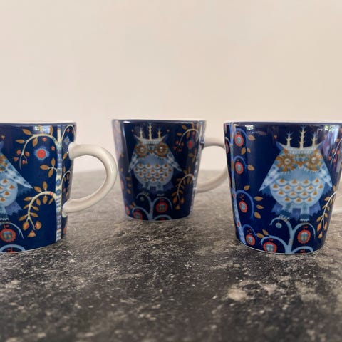 Iittala Taika kopper i rød farge med dekorative mønstre.