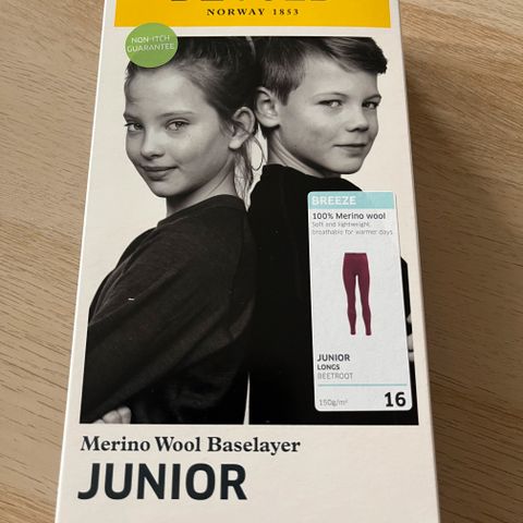 Longs i merket Stillongs (Devold), med polyester innside som ikke klør. Myk og god, pent brukt. Lappen er klippet bort, men den er i størrelse 13-14 år (164).