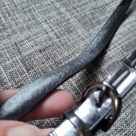 Beltet måler ca 102cm uten spenne.