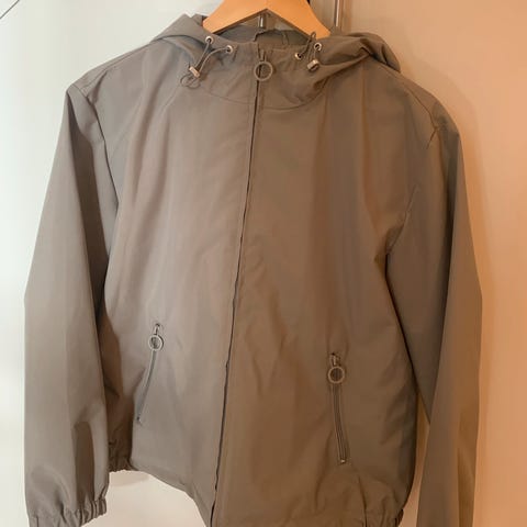 Koksgrå jakke med glidelås.