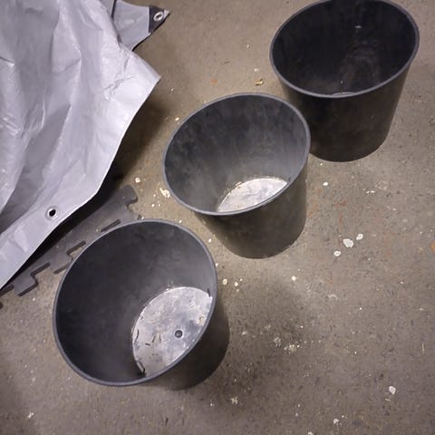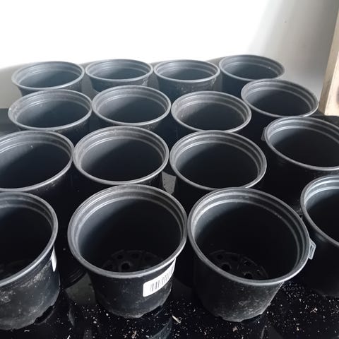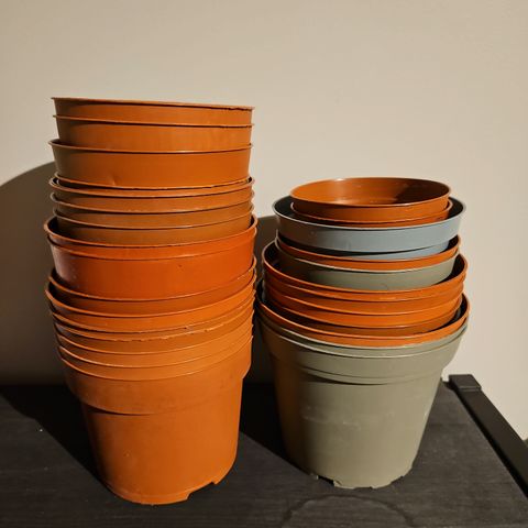 Hvite plastpotter i to størrelser