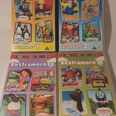 Selger tre Barnas Favoritter – Bonus DVD-er, fulle av kjente og kjære figurer fra barne-TV. Perfekt som underholdning for de yngste, med trygt og variert innhold.