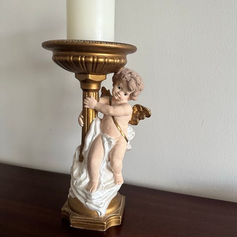 Nydelig Candy design engle lysestake. 20 cm bred og 8 cm høy.