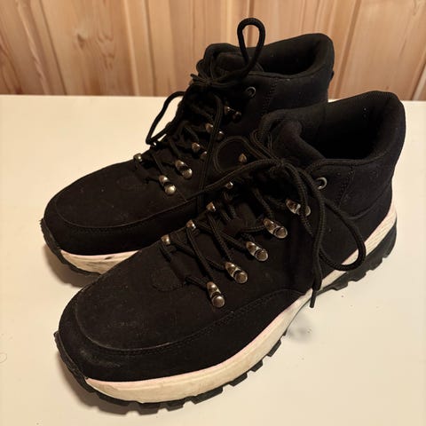 👍Str.38 med brunn og svart sammen med skinn , den er god og varm i vintertid. Fint brukt.