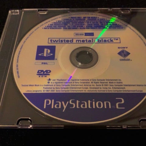 selger twisted metal, det er synlige merker på papir omslaget.