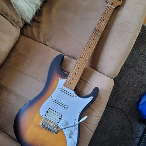 Kropp av 1stk Honduras mahogany og gitaren er veldig lett (rundt 3kg) og har utrolig resonans. Pickups er Dimarzio Cruiser (Andy Timmons) i neck og Tonerider Alnico IV i bridge. Midten er bare cover. Switchen er byttet til Freeway 3-way switch (sammen 6 lyd muligheter med coil splits osv). Tonepot er koblet av :)