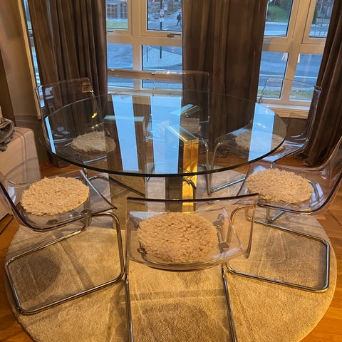Transparent plast med krom understell.