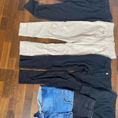 1 skjørt, en joggebukse, to shorts selges samlet for kr 200,- pent brukt, ingen merknader.