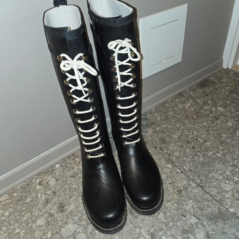 Hvite fleecesokker til Hunter støvler selges rimelig. Litt misfarget fra mørke støvler og noe tynne i stoffet på hælen. Passer str. 36-38. Gjør støvlene gode og varme.