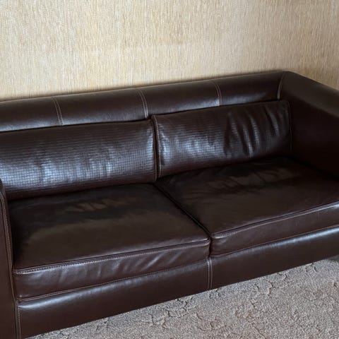Skinnsofa selges på grunn av at vi har kjøpt en større sofa.