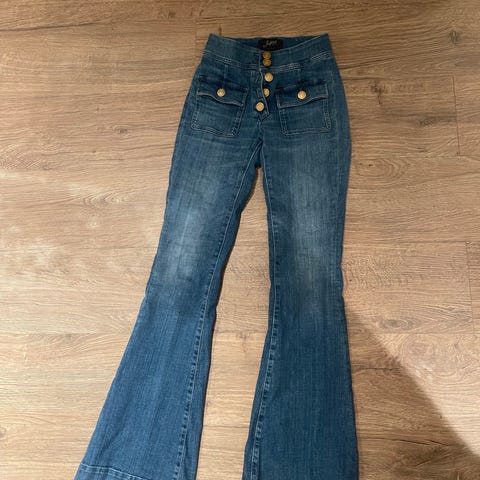 Lekker Seafarer Anais jeans i klassisk blå denim. Modellen har høy midje, markerte frontlommer og ikoniske gullknapper som gir en feminin og sofistikert silhuett. Veldig flatterende passform og tidløs stil – like fin til hverdag som til mer pyntede anledninger.