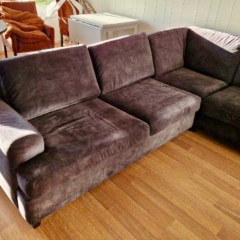 Säljer en pen brukt velour sofa + en puff som passar gott till.