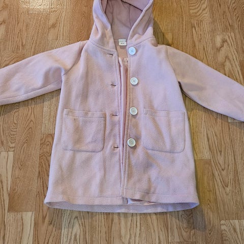 H&M jakke til jente 3-4 år, men kan fint brukes opptil 5-6 år, da jenta vår har gjort det. Jakken er myk og varm, med knapper foran og to lommer. Egnet for høst og mildt vintervær. Pent brukt. Vasket en gang.