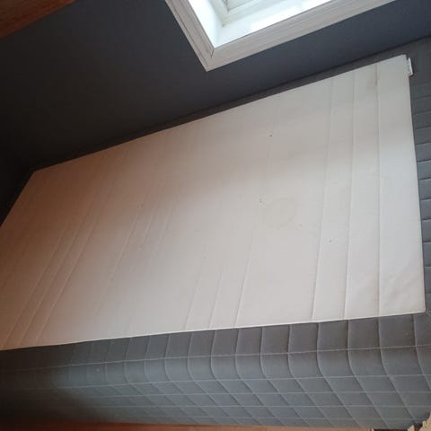 Usikker på både alder og merke på senga. Får ikke fjernet Jysk, men mener den er kjøpt der.