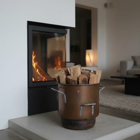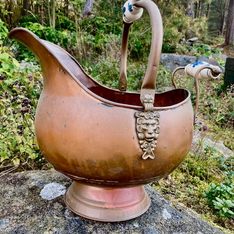 ANTIKK VEDBØTTE KOBBERGRYTE, VEDKURV,GI BUD👍