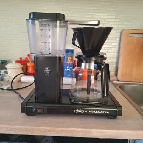 Technivorm Moccamaster Kaffetrakter med kapasitet på opptil 1,25 liter. Kaffetrakteren har svart farge og inkluderer glasskanne. Egnet for brygging av filterkaffe.