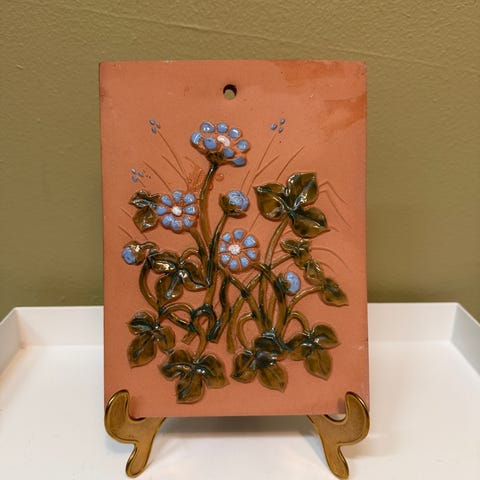 Dekorativ keramikk, relieff av blomster i naturfarger. Passer fint på kjøkken, stue og hytta.