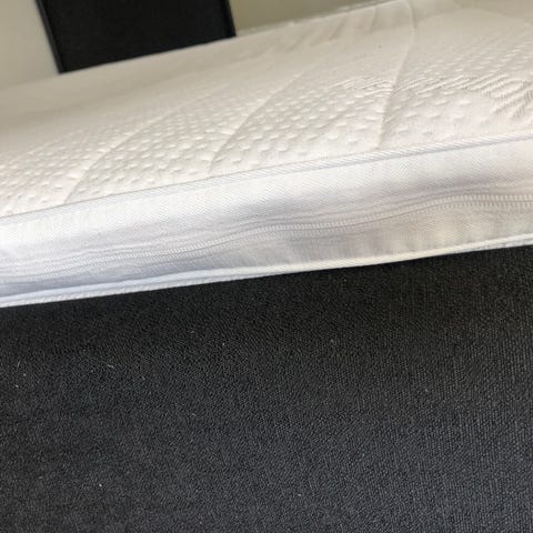 Dobbeltseng med madrass og overmadrass.