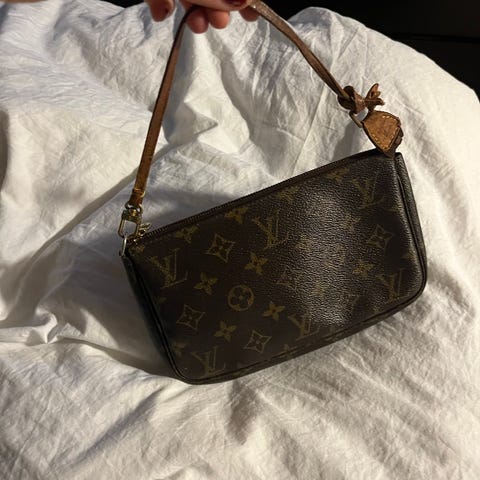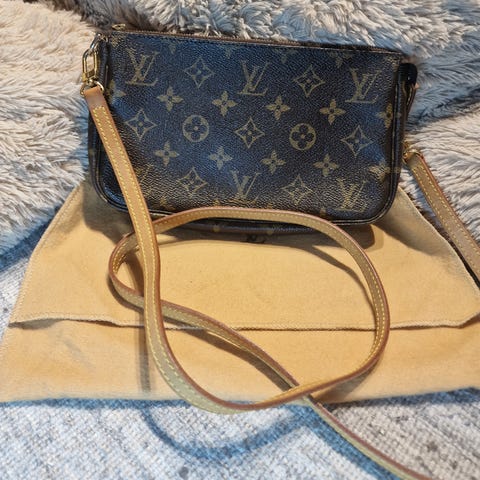 Mangler deler i glidelåsen, viser i to av det siste bilder. Ellers, pursen er fremdeles fint og mye mer å bruker til🤩 Original stroppen og dustbag følger med.