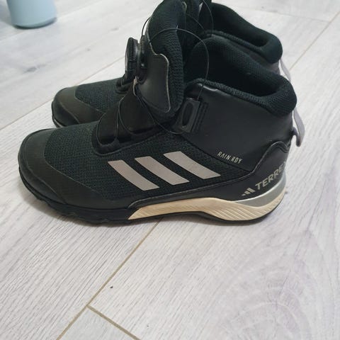 Viking barnestøvler for gutt i størrelse 34. Støvlene er svarte og laget for å gi beskyttelse og komfort i vått vær. De har solid såle med godt grep.