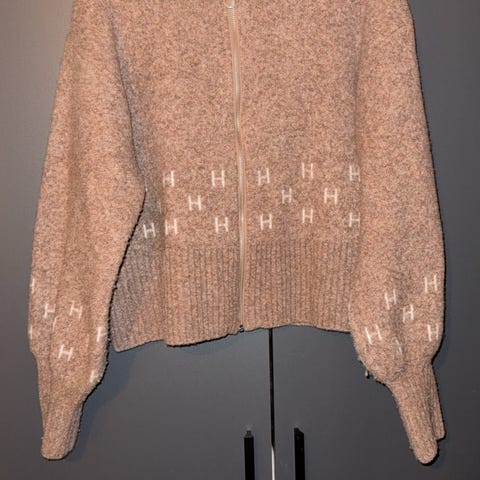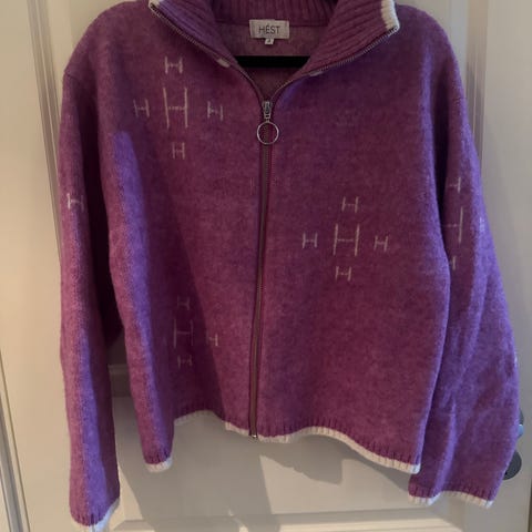 HÉST lang Cardigan i gul farge, laget av ull og nylon (se etikett) Størrelse one size. Deilig kvalitet . Lengde 106 cm. Nypris 2700.