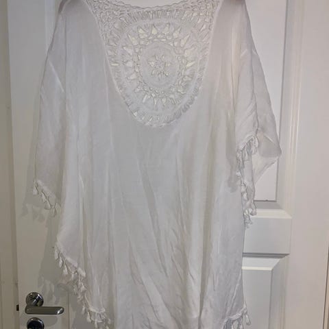 Artig overtrekksplagg for strandbruk eller lignende. Jeg har merket "helt ny", og det er fordi det er helt ubrukt - av en eller annen grunn kom jeg aldri på å ta det med meg på strandtur. Jeg har ikke kvitteringen, men er temmelig sikker på at denne ble kjøpt i en vanlig klesbutikk og ikke en vintagebutikk. Merket heter Michael.