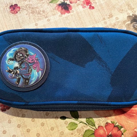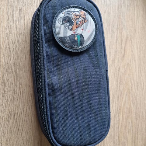Pent brukt rosa pennal fra Beckmann med gepard-mønster selges