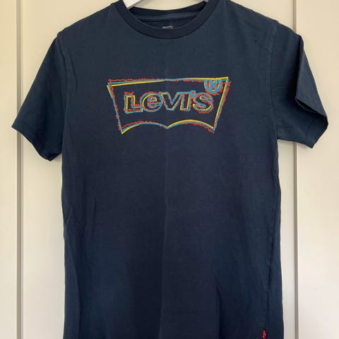 T-skjorte fra Levi’s, marineblå og militærgrønne striper. Helt ny, str xs.