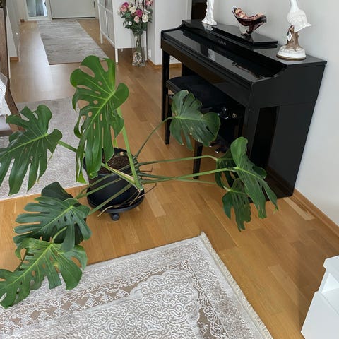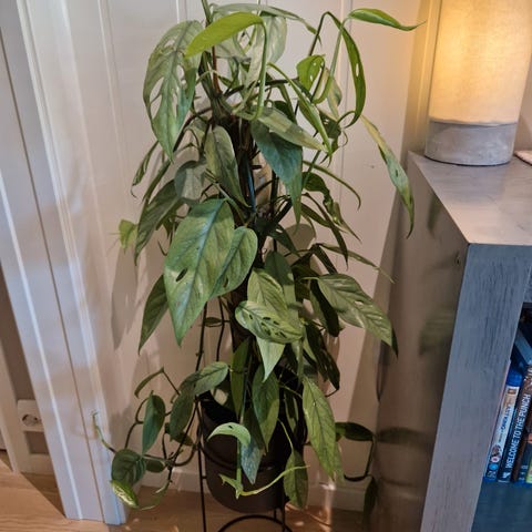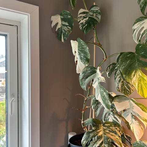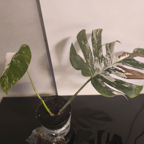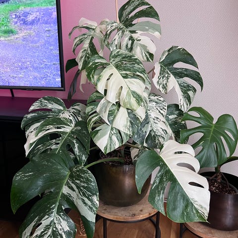 En stk stor monstera thai. Må hentes. 7 blader. Meget fin variegering på.