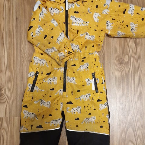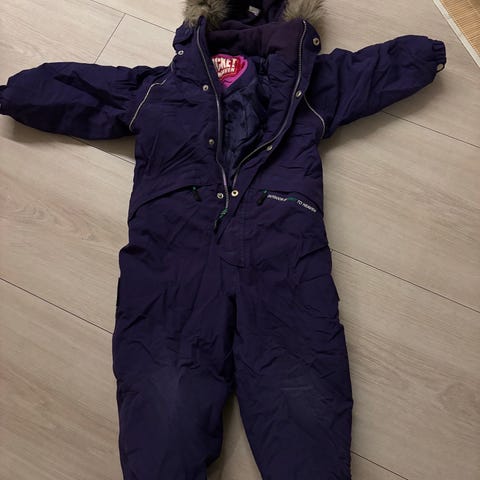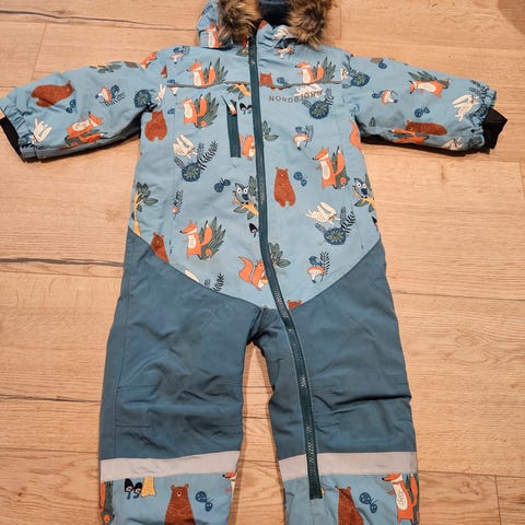 Kjempe fin og varm dress i merket Nordbjørn. Str 90. Den er brukt et par mnd. Ingen slitasje med unntak av det hullet under armen som lett kan fikses med nål og tråd for de som kan det. Ingen slitasje på knær eller bakdel.