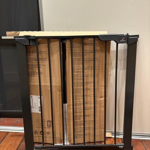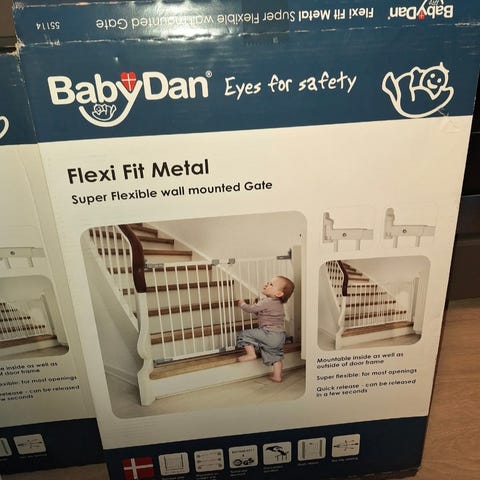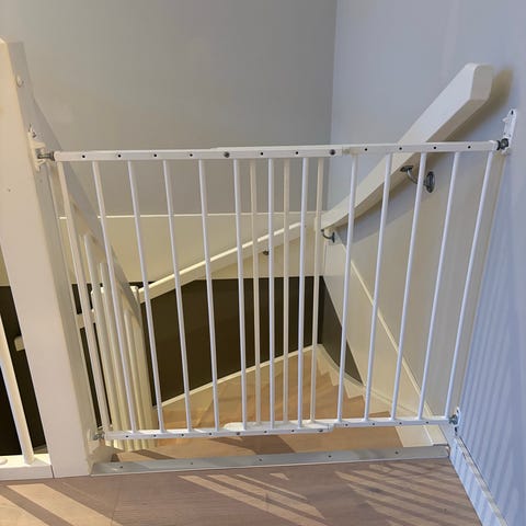 Velfungerende og stilren sikkerhetsgrind til trapp av merket BabyDan. Nypris er pt 649,- hos Clas Ohlson.