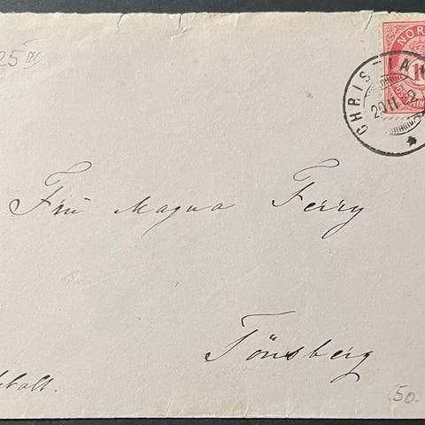 Norge klassiske brev, nk 36, 10 øre fra Fredrikshald 6.II.1883