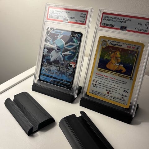 Stativ for oppbevaring og visning av Pokémon-kort. Laget i plastmateriale med et enkelt design for å holde kort på plass. Passer til standard kortstørrelse. Passer til PSA