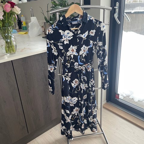 Kjole fra Secrets by B, kun prøvd på. Nydelig blåblomstret kjole. Kostet 1400kr ny.