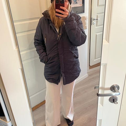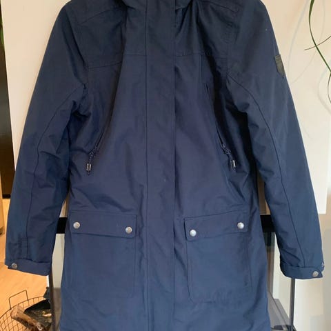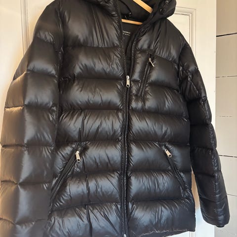 Pent brukt boblejakke, vinterjakke som kan brukes også vår og høst, fin skinndetalj på glidelås. Farge er mørkeblå, næremere svart. Kan sende via postnord for 69kroner.