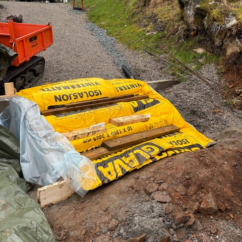 Kan kuttes med håndsag og puzzles som lego. For skjøting av rester er det bare å bruke byggskum og skjære av overskudds massen, lett å forme til f, eks forskaling.