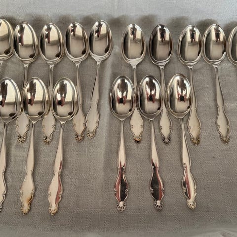 Pent brukt "Spesial" 60 gram sølv/sølvplett selges. Vintage bestikkdeler med vanlig bruksslitasje. Seks gafler, 80 kroner per stykk, fem spiseskjeer, 80 kroner per stykk, to teskjeer, 40 kroner per stykk.