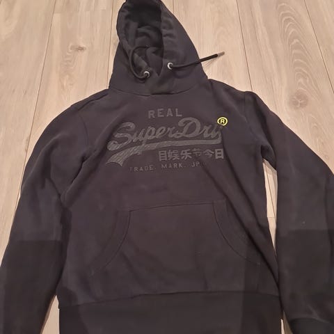 Pent brukt superdry hettegenser til gutt / herre i størrelse S (small). Fargen på «lissene» er gått noe av i vask, ellers er genseren hel og fin.