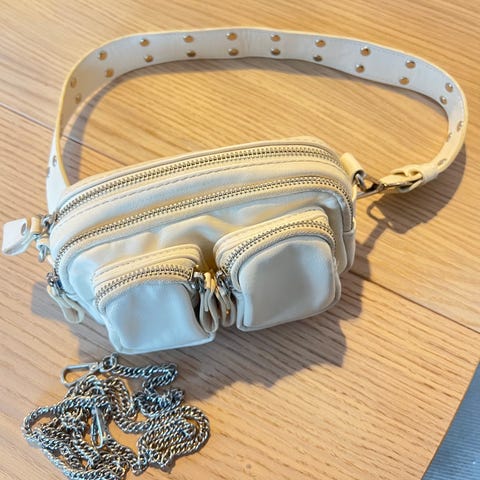 Selger en pent brukt veske fra Gina Tricot. Vesken har en skulderrem og en liten hank, og lukkes med klaff og knapp. Den har et enkelt hovedrom med ekstra rom på innsiden.