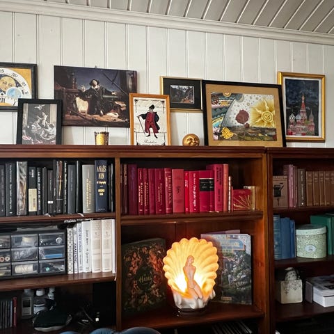 Solid bokhylle i mørkegrønn (sjatteringer).