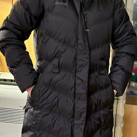 Bergans 5375 Rjukan Down Lady Jacket er en svart dunjakke for kvinner i størrelse L. Jakken har ytterstoff av nylon og innerstoff av nylon, med dunfyll som består av 70% dun og 30% fjær. Svært lite brukt. Ingen merker eller slitasje.