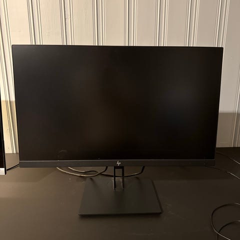HP 24-tommers skjerm med svart design. Skjermen har en størrelse på 24 tommer og tilkoblingsmuligheter inkludert DVI og USB. Passer til generell bruk for datavisning.