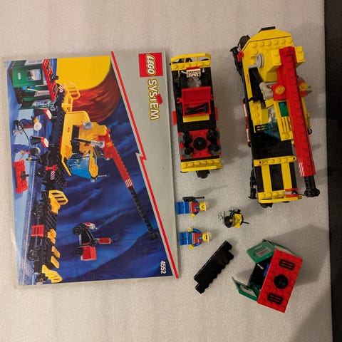 Mangler noen smådeler, spesifikt eksospottene. Men instruksjoner følger med, og manglene deler finnes på bricklink.